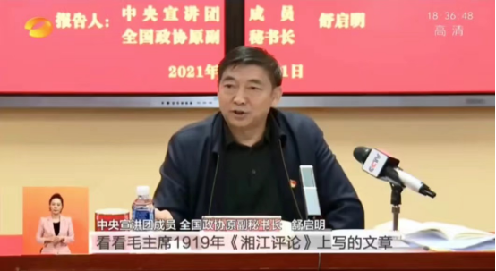 12月1日下午,学习贯彻党的十九届六中全会精神中央宣讲团走进湖南第一师范旧址,中央宣讲团成员、全国政协原副秘书长舒启明作主题宣讲。多位湖南一师的师生代表发表学习体会及举手提问,与宣讲人热烈互动。我馆杨丹副馆长参加座谈会并提问交流,张颖副馆长负责参观讲解,贺中鼎、熊灿星老师参与会务服务工作。