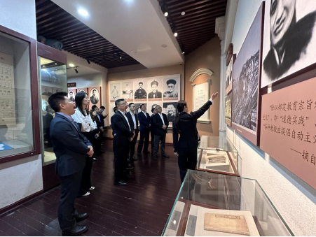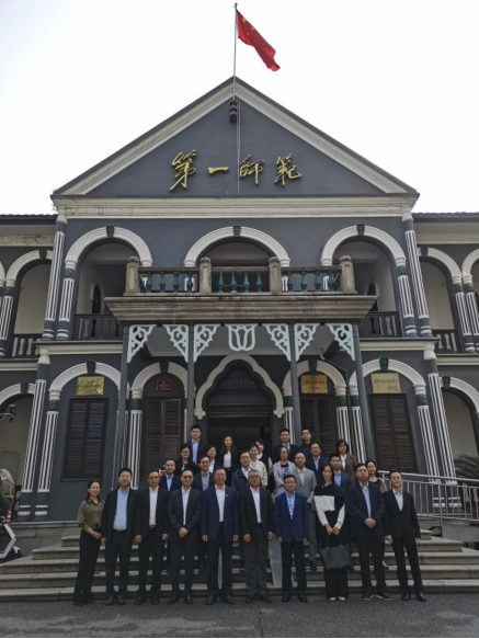 澳门特别行政区高级公务员访问团一行参观了学校旧址纪念点和纪念馆“一代伟人从这里起步”主题展厅,在纪念馆报告厅聆听了《衣柜里的父子情》《一封托孤信》等红色故事,后在学校旧址办公楼前坪合影留念。
