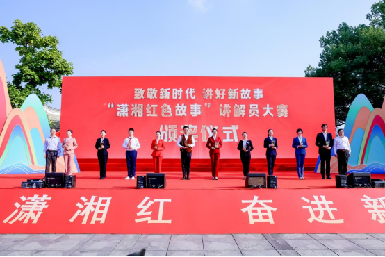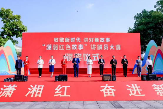 开幕式上宣布了“将军故里”红色旅游发展联盟成立,并为潇湘红色故事讲解员大赛颁奖。我馆专职讲解员熊灿星获授专业组“优秀讲解员”称号,“润之师生志愿宣讲团”获授“金牌志愿讲解员”称号。